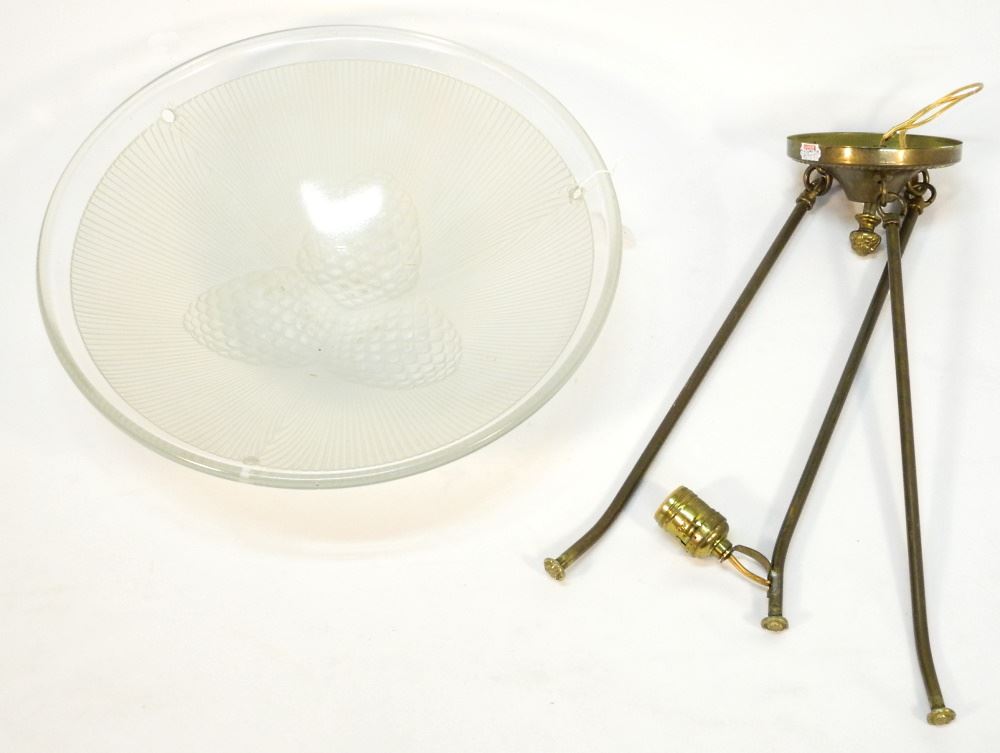 LOT 92 Art Deco Glass "Pinecones" Light Fixture with Mounting Hardware, 15 7/8" Diameter. Estimate: $100 - $150 Sold For: $180 Auction Date: Tuesday, January 24 2023 at 6:00 PM