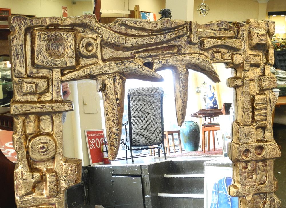 Canadian Modern Brutalist Molded Frame Mirror, 58"x34 3/4".