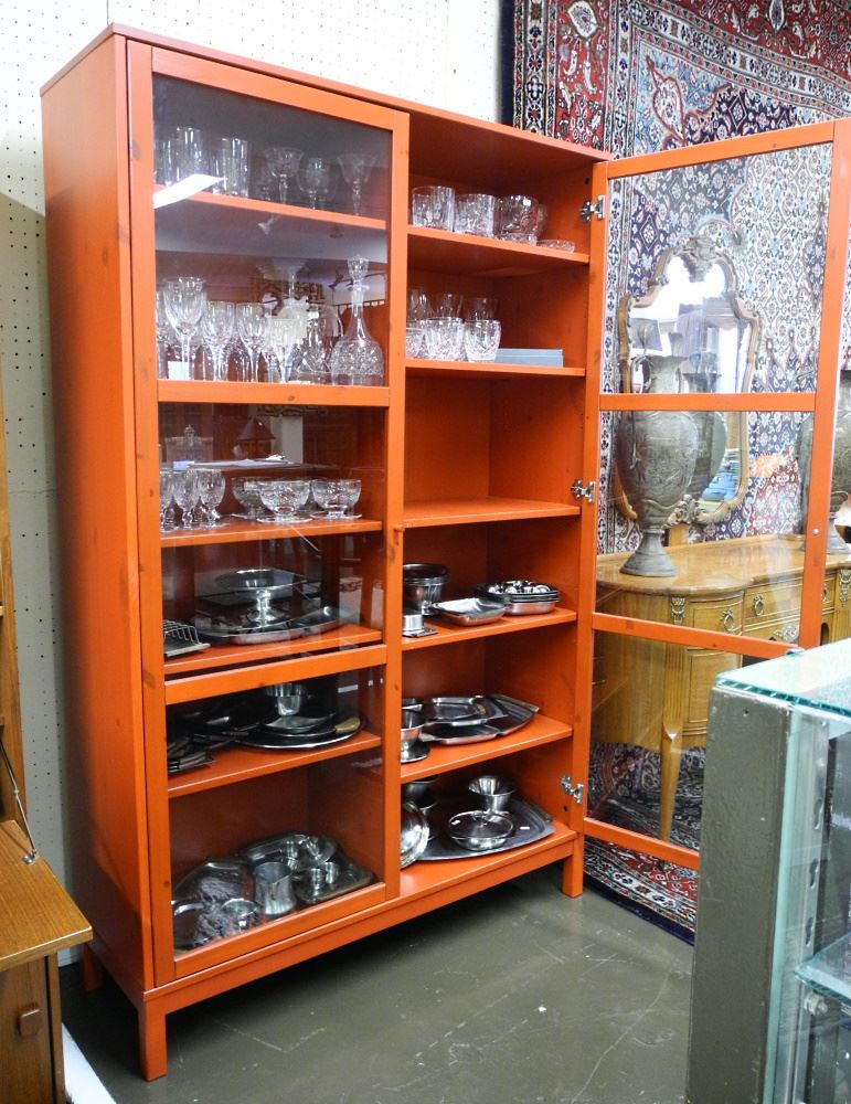 Red Glass Bookcase, 70"H.
