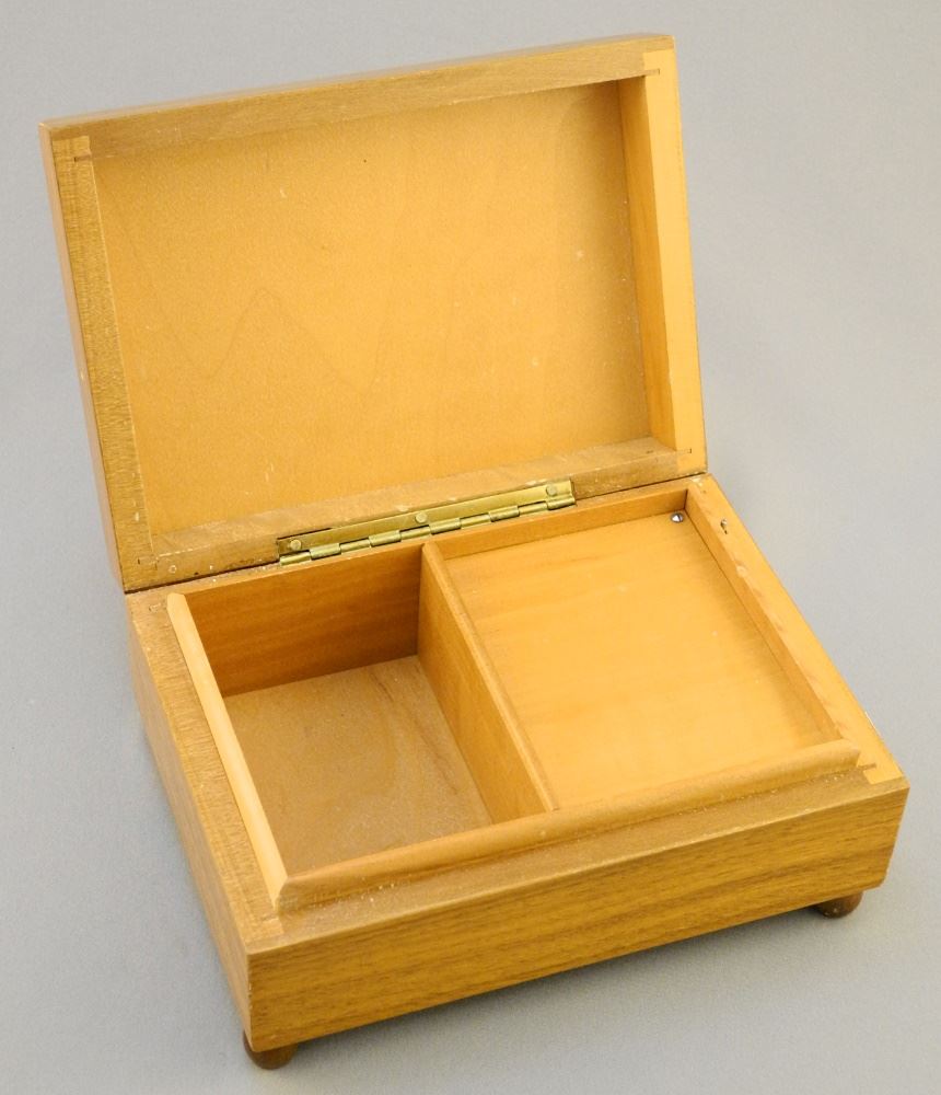 Thorens Music Box with Parquetry Cover, 5 7/8" Wide.