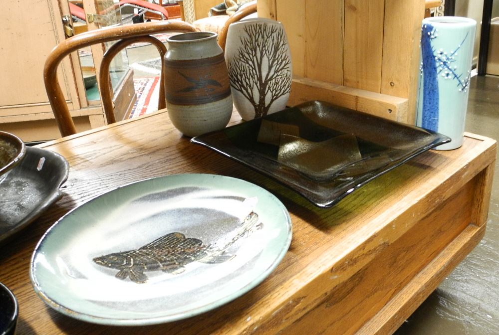 Collection of Various Ceramic Vessels & Dishes, Includes Ikebana Bowl & Glass Dish