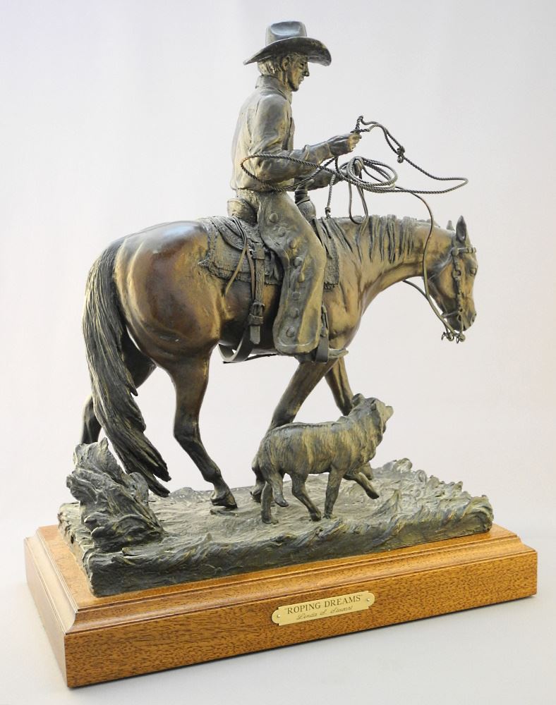 Bronze Figure Signed Linda S. Stewart, 17" x 13 3/4" x 7 7/8", "Roping Dreams" AP/30.