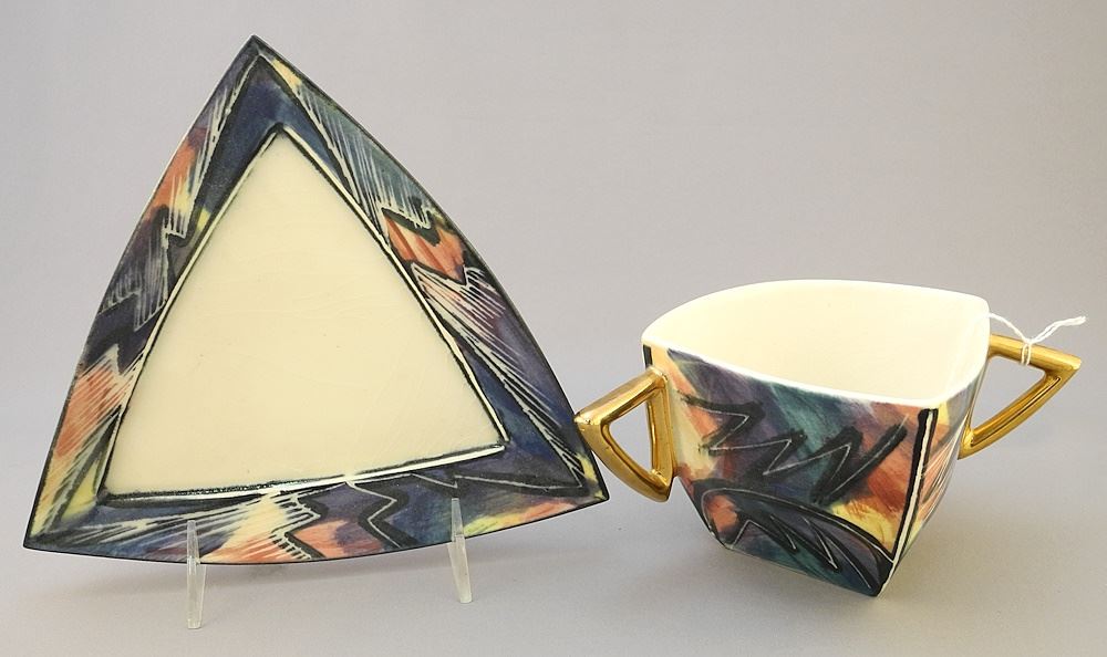 LOT 168 Pair of Pottery Cup and Saucers signed (Guy)Simoneau(Montreal), 3 7/8 x 7 7/8 x 7 1/2". Estimate: $50 - $60 Sold For: $30 Auction Date: Tuesday, July 18 2023 at 4:00 PM
