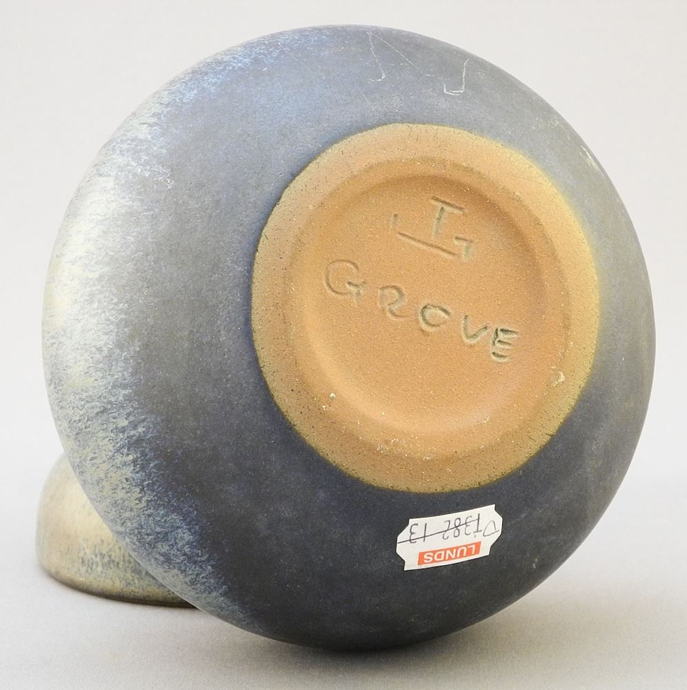 LOT 280 Blue Glazed Pottery Jar signed JG (Jan) Grove, 4"H. Estimate: $80 - $100 Sold For: $90 Auction Date: Tuesday, July 18 2023 at 4:00 PM