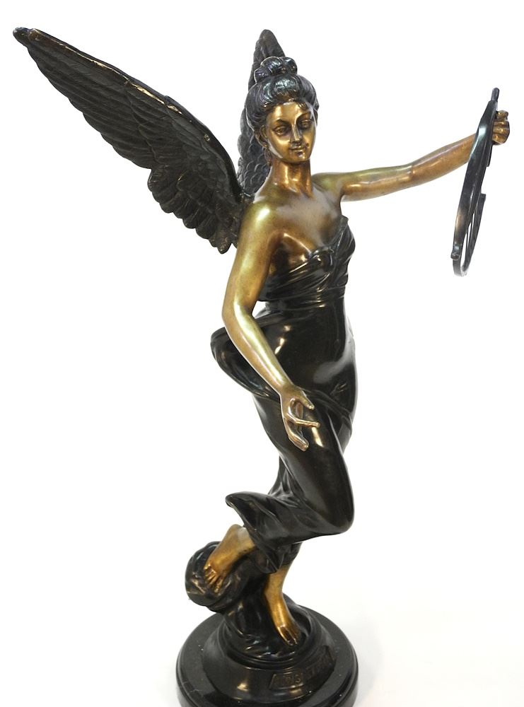 LOT 36 Bronzed Sculpture, 40 1/2 x 22 1/2 x 18", "L'Inspiration", 20th C. Estimate: $250 - $400 Sold For: $310 Auction Date: Tuesday, November 21 2023 at 4:00 PM