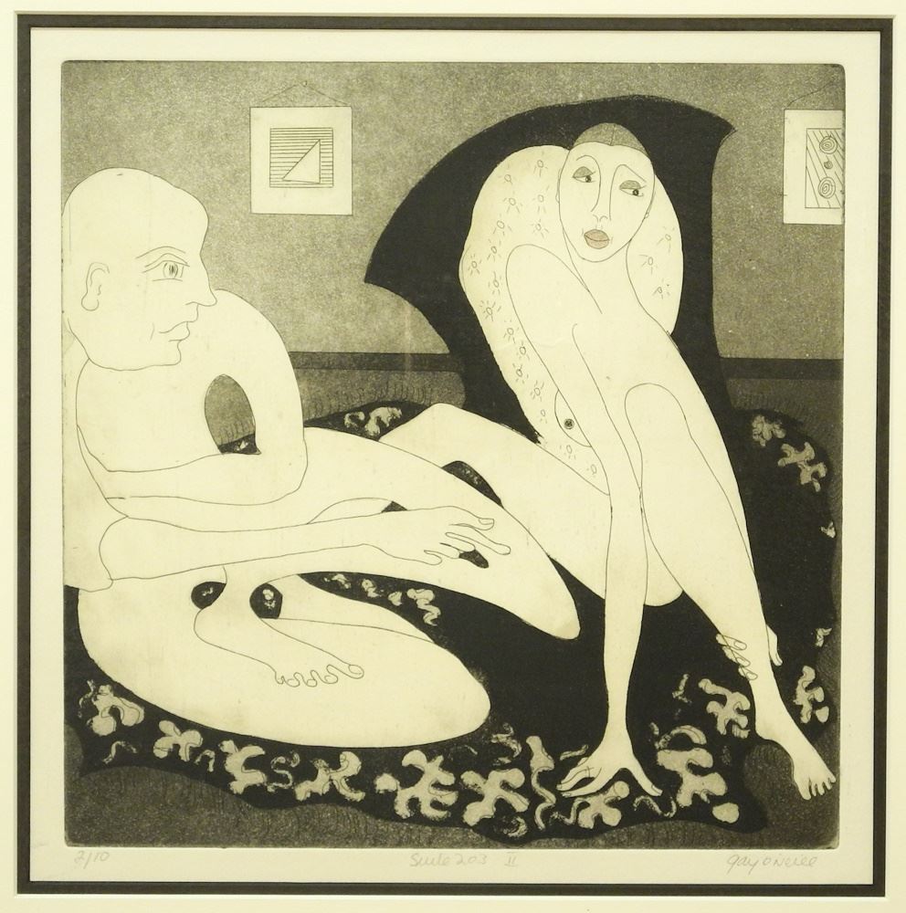 LOT 16 Etching Signed Gay O'Neill (Dublin 1976), 12 1/2" x 12 1/2", "Suite 203II. Estimate: $60 - $100 Sold For: $300 Auction Date: Tuesday, November 21 2023 at 4:00 PM