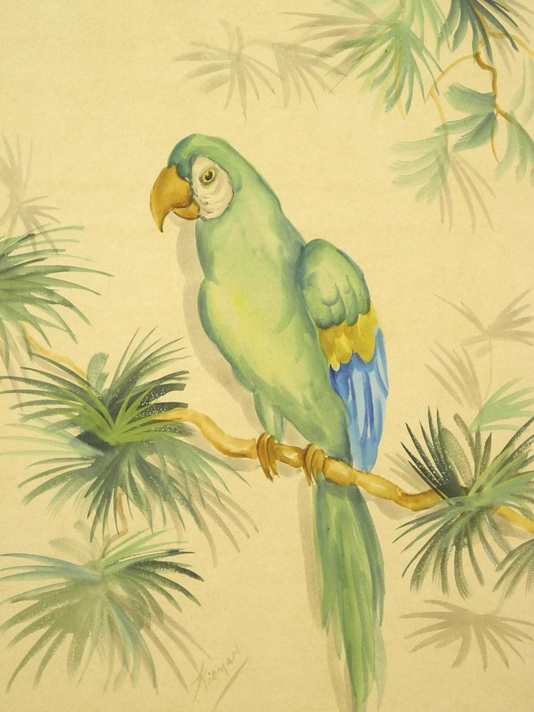 Watercolour signed Kieman, 19 1/2 x 15 1/2", "Observant Parrot".