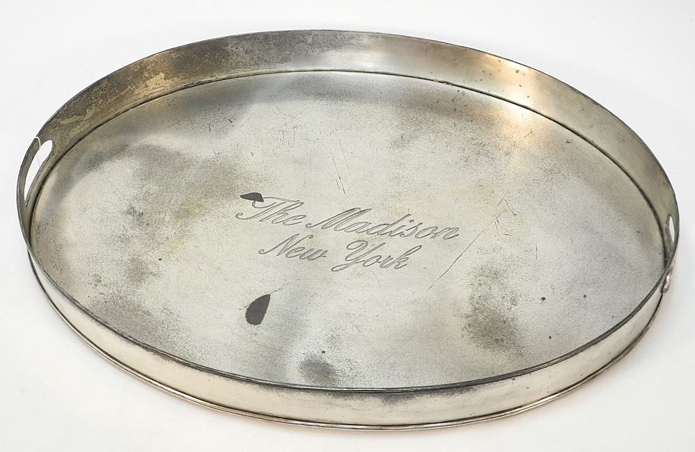 Reproduction "The Madison New York" Oval Plated Tray, 24 1/4"W.