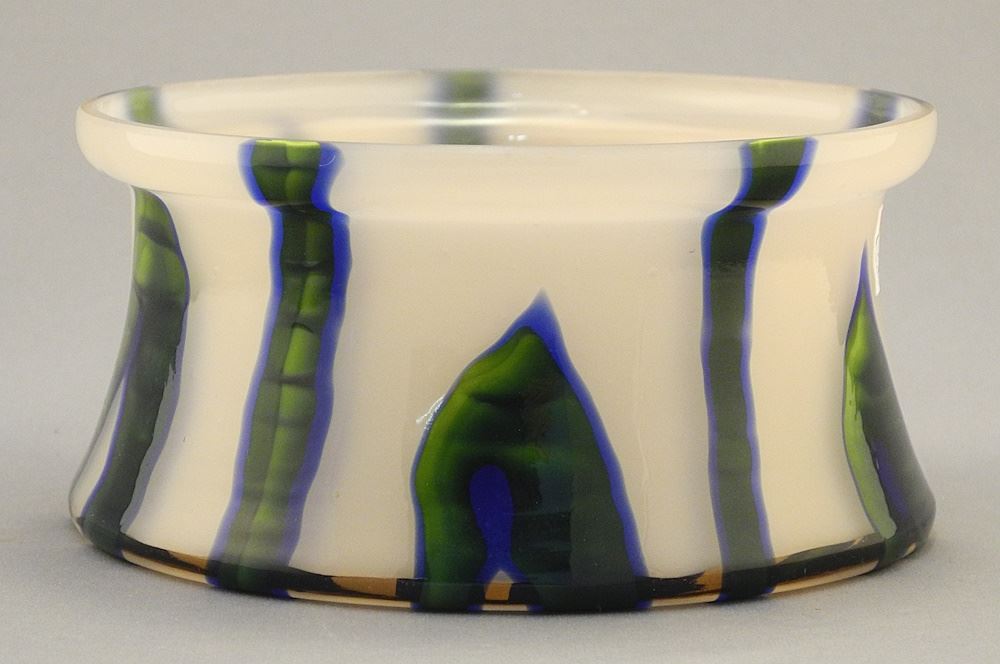 Art Nouveau Pink & Green Glass Bowl, 2 1/4 x 4 3/4" Diameter.