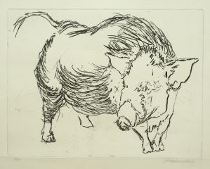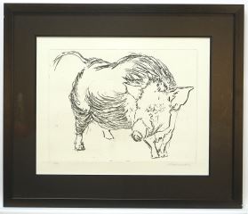 Etching signed Indistinctly, Plate 9 5/8 x 11 5/8", "Big Pig" #12/40.