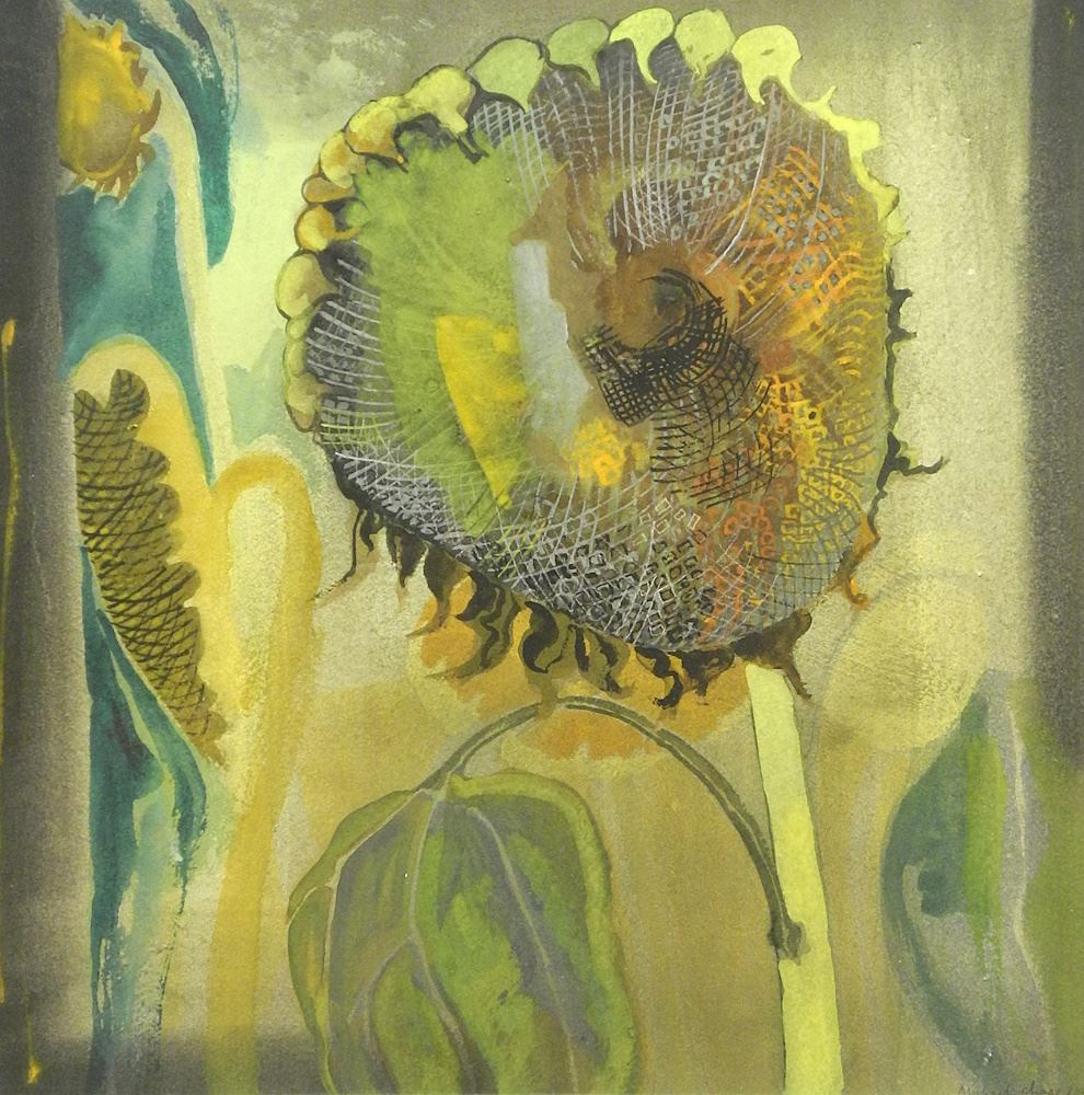 Watercolour signed Michael Chase, 12 x 18", "Sunflowers"-C.1985.