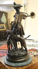 LOT 45 Bronze Sculpture after Hippolyte Moreau, 31 1/2 x 18 1/2 x 17 1/2", "Huntsman with Hounds". Estimate: $250 - $400 Sold For: $350 Auction Date: Tuesday, November 21 2023 at 4:00 PM