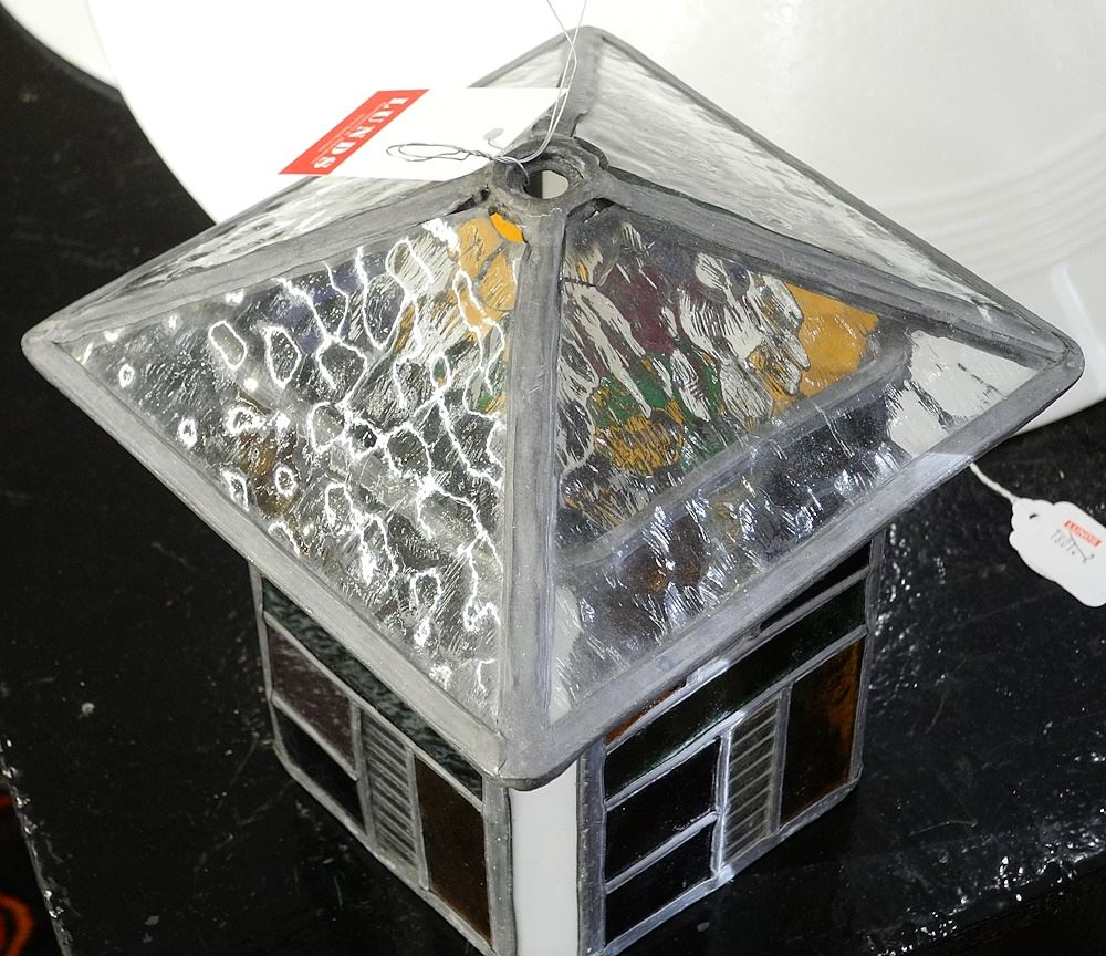 Leaded Glass Pendant Lamp Shade, 7 3/4 x 7 3/8 x 7 1/8".