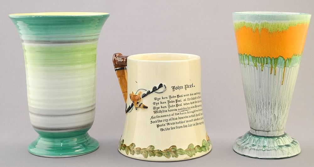 2 Shelley Dripware Vases (6 5/16"H) & Crown Devon Musical Tankard, 4 1/2"H.