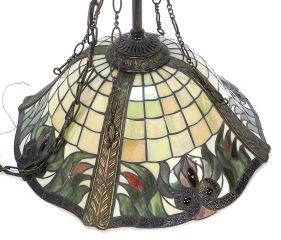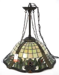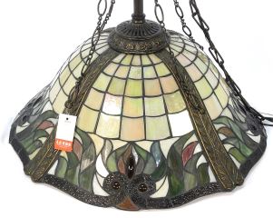 LOT 141 Iridescent Glass Floral Pendant Light Fixture, 22 x 22 1/2" Diam, Chain 30". Estimate: $60 - $100 Sold For: $400 Auction Date: Tuesday, November 21 2023 at 4:00 PM
