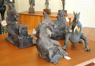 LOT 62 4 Pottery Dragon Sculptures signed by Cat with Paw Print, as found (chips and losses noted). Estimate: $80 - $100 Sold For: $30 Auction Date: Tuesday, November 21 2023 at 4:00 PM