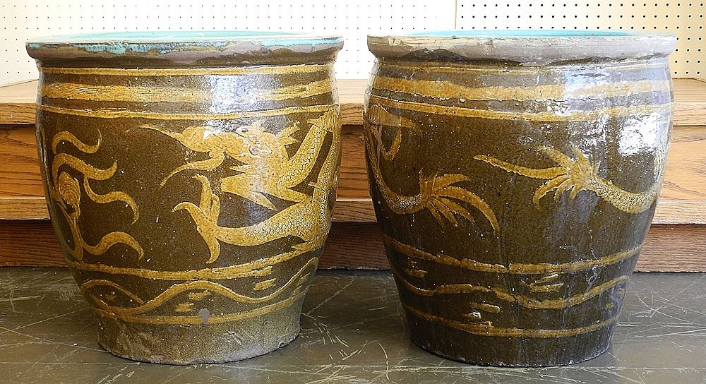 Pair of Chinese Stoneware Egg Crates , 17 1/4"H.