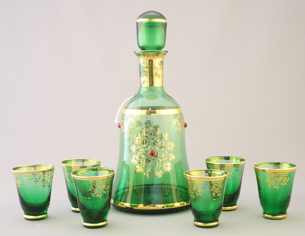 1960's Italian Green Glass Liqueur Set, 8 7/8"H.