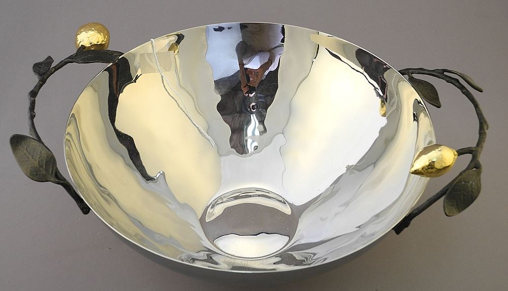 LOT 96 Michael Aram Serving Bowl, signed Aram, 15"W. Estimate: $80 - $120 Sold For: $90 Auction Date: Tuesday, April 23 2024 at 4:00 PM