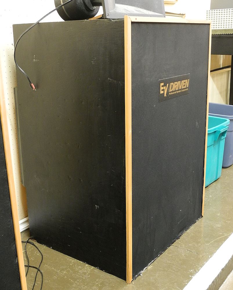 LOT 185 Pair of Home Built Speakers, 41 1/2" x 28 1/2" x 24 1/4". Estimate: $100 - $300 Auction Date: Tuesday, April 23 2024 at 4:00 PM