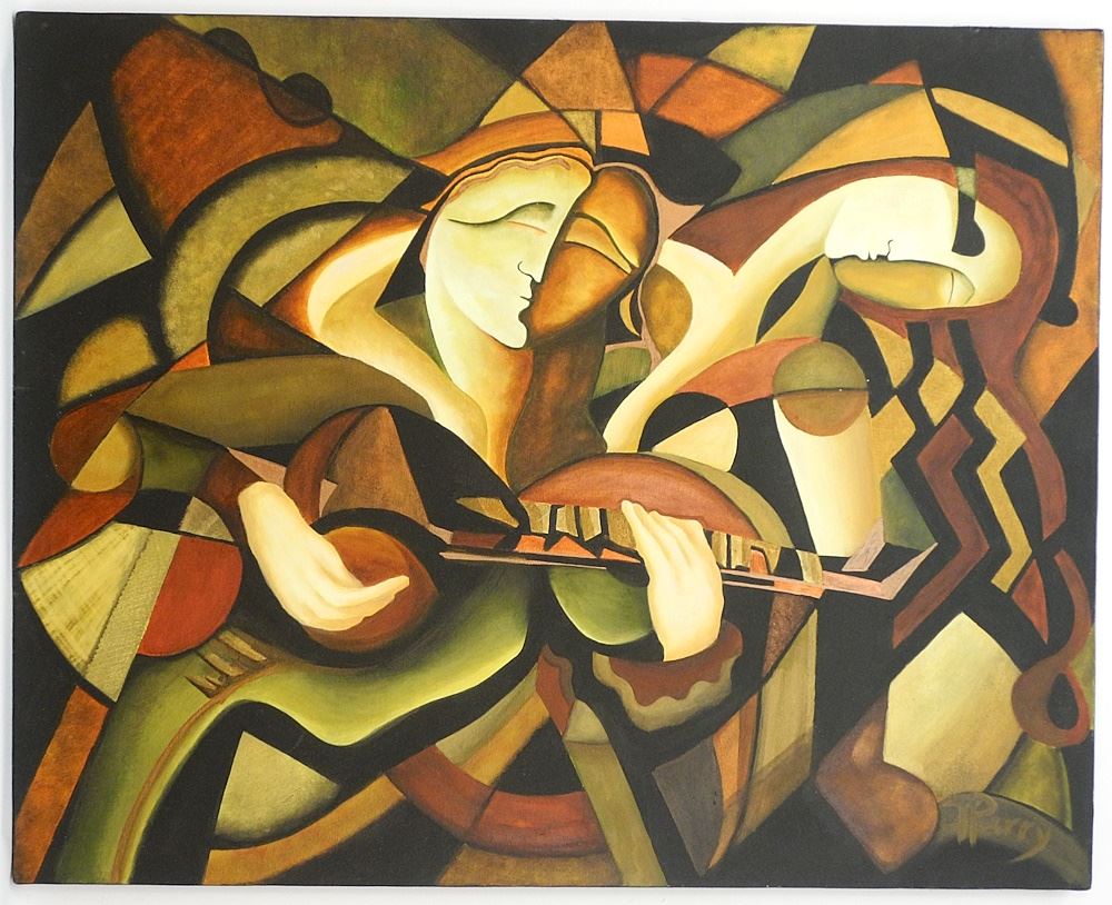 LOT 300 Oil on Canvas signed T. Perry, 24" x 30", "Musicians", unframed. Estimate: $100 - $200 Sold For: $200 Auction Date: Tuesday, April 23 2024 at 4:00 PM