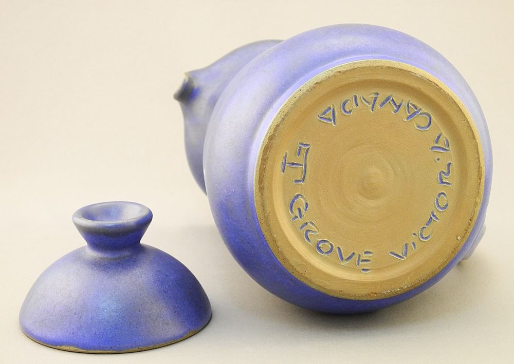 5 Piece Pottery Coffee Set Monogrammed JG (Jan Grove), 9"H.
