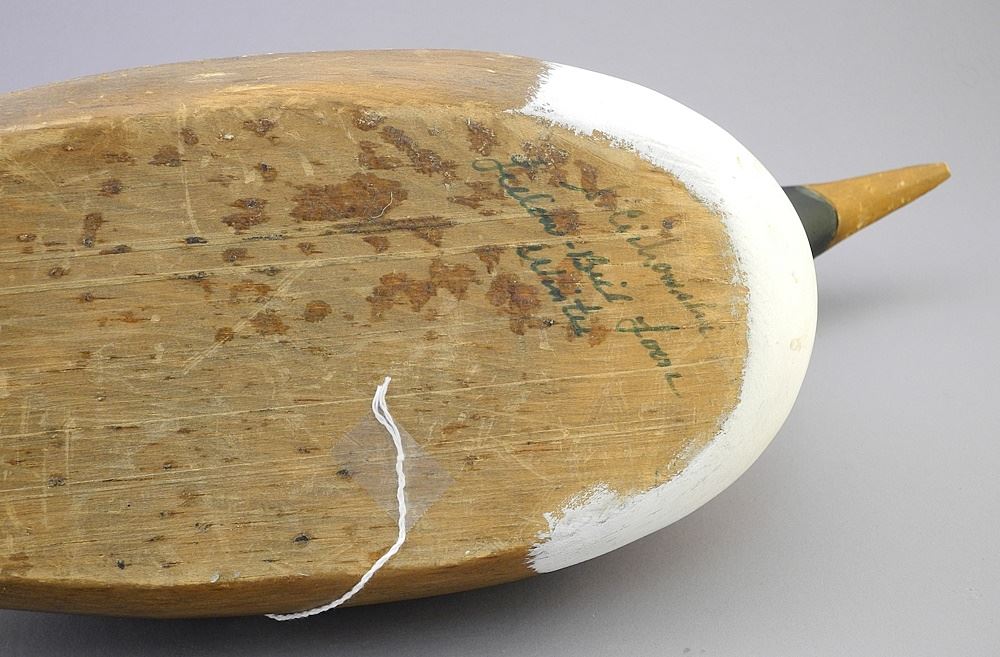2 Carved Wood Decoys: 1 signed Burns / 1 signed Indistinctly, 20" & 14 3/4"L.