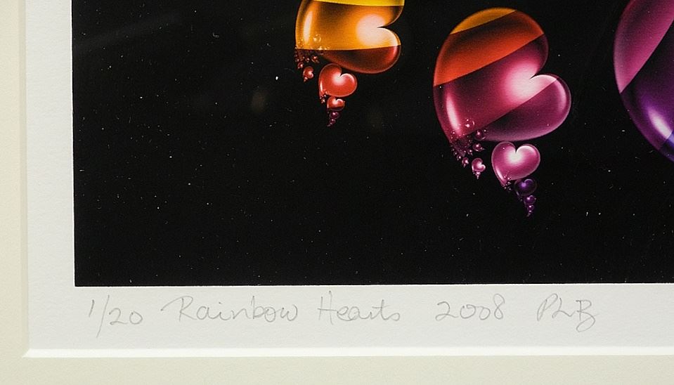 LOT 8 Fractal Digital Print Monogrammed PL B (Pam Blackstone), 8" x 8", "Rainbow Hearts 2008", #1/ Estimate: $80 - $100 Auction Date: Tuesday, April 23 2024 at 4:00 PM