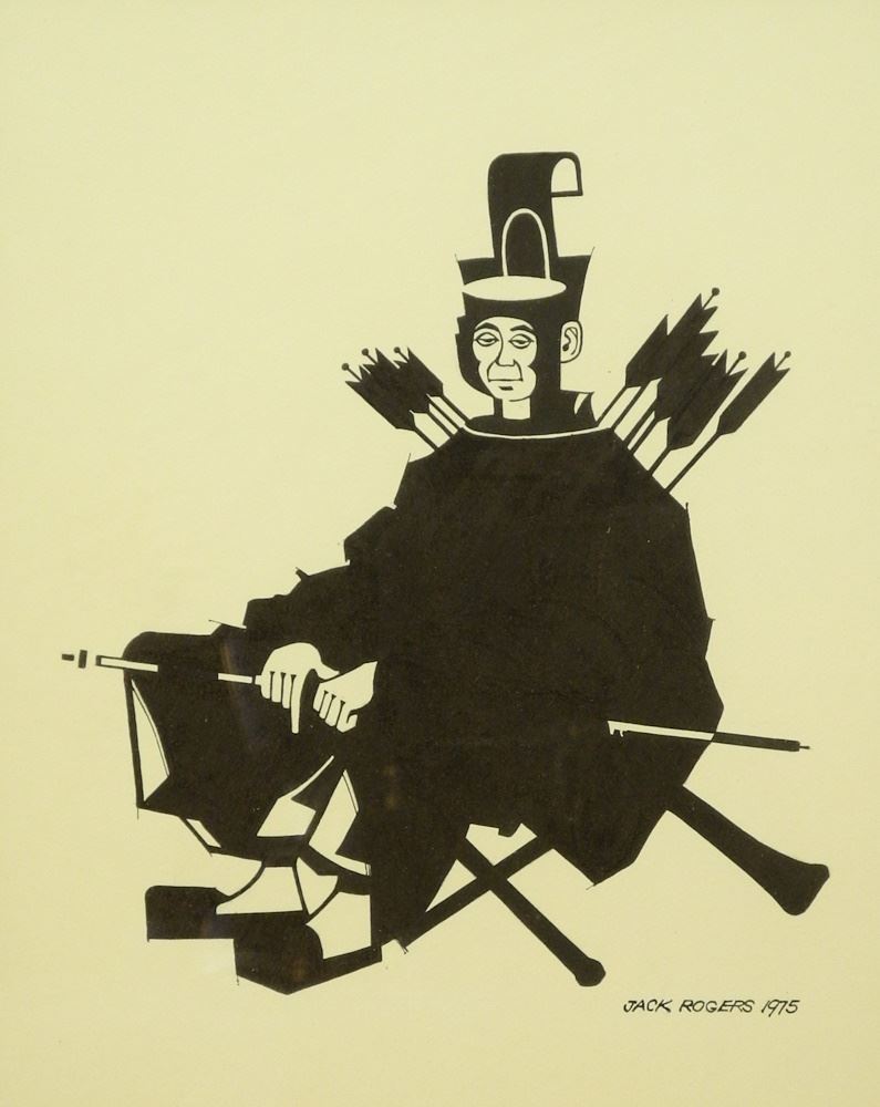 Pen Drawing signed Jack Rogers, 12 1/2" x 10", "Archer".