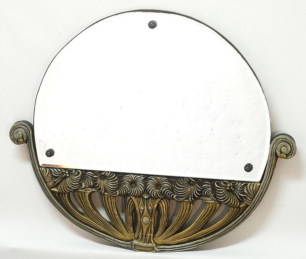 Art Deco Gold & Silver Finish Demilune Mirror, 18" x 21 3/4".