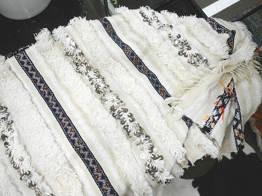 LOT 217 Moroccan Wool Sequined Throw, 75" x 49". Estimate: $80 - $100 Auction Date: Tuesday, April 23 2024 at 4:00 PM