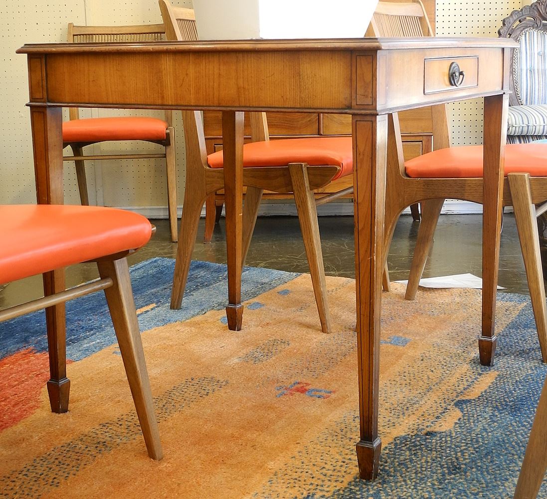 Leather Inset Games Table, Acquired Harrods, 29 7/8" x 29 1/8" x 29 1/8"