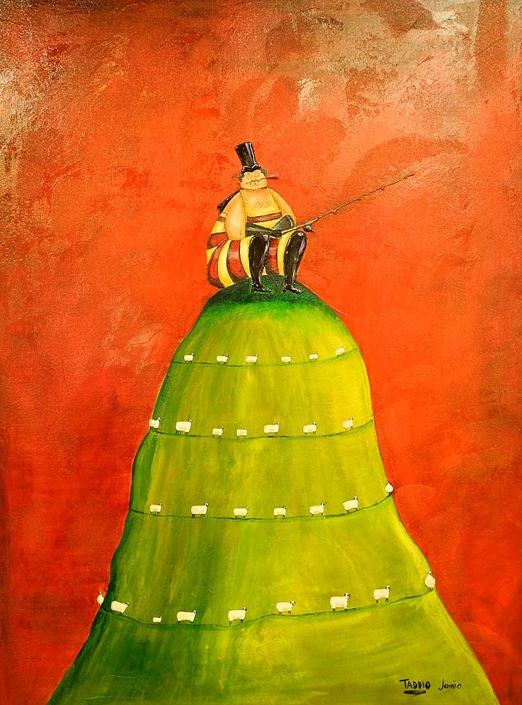 Acrylic on Canvas signed Taddio & Jannio, 48" x 36", "Untitled Gent on Hill".