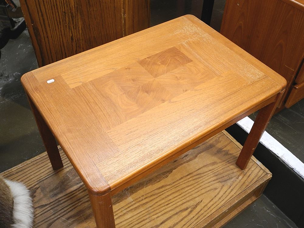 LOT 46 Larsens Danish Modern Teak Coffee & End Table (damaged leg noted). Estimate: $100 - $200 Sold For: $100 Auction Date: Tuesday, April 23 2024 at 4:00 PM