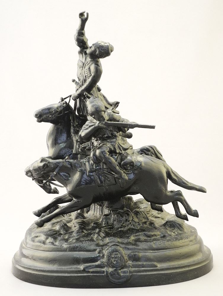 LOT 207 Soviet Cast Iron Sculpture after Evgeny Lanceray, 10 1/2 x 8 1/2 x 5 1/8", "Cossacks". Estimate: $100 - $150 Auction Date: Tuesday, April 23 2024 at 4:00 PM
