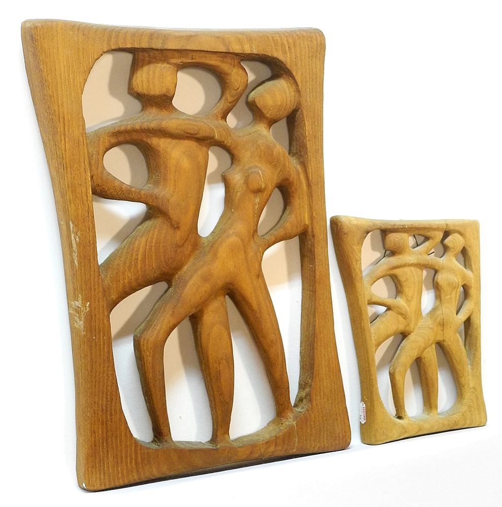 LOT 113 2 Wood Plaques signed (Alfred) Carlsen'74, 17" X 11 1/2"&"9 1/8" x 6 1/2", "Dancers". Estimate: $100 - $200 Sold For: $50 Auction Date: Tuesday, April 23 2024 at 4:00 PM
