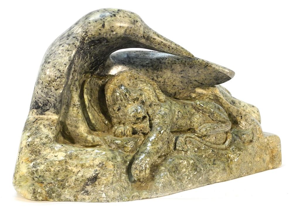 LOT 287 Marble Sculpture, 9 x 15 1/2 x 5", "Bird Nesting with Lion". Estimate: $50 - $60 Sold For: $50 Auction Date: Tuesday, April 23 2024 at 4:00 PM