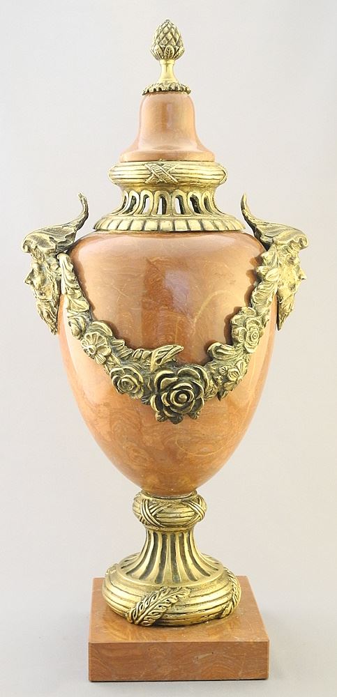LOT 905 Red Marble & Cast Brass Musk Mounted Urn, 18"H. Estimate: $220 - $300 Sold For: $225 Auction Date: Tuesday, April 23 2024 at 4:00 PM