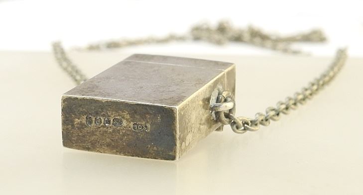 LOT 58 Hallmarked Silver Pill Box on Chain, 12 3/4"L, 30.27 Grams. Estimate: $80 - $120 Sold For: $70 Auction Date: Tuesday, April 23 2024 at 4:00 PM