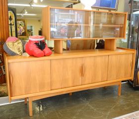 LOT 9 Danish Modern Style Teak Sideboard & Hutch, 82"w (handles noted). Estimate: $500 - $750 Sold For: $1,100 Auction Date: Tuesday, July 30 2024 at 4:00 PM