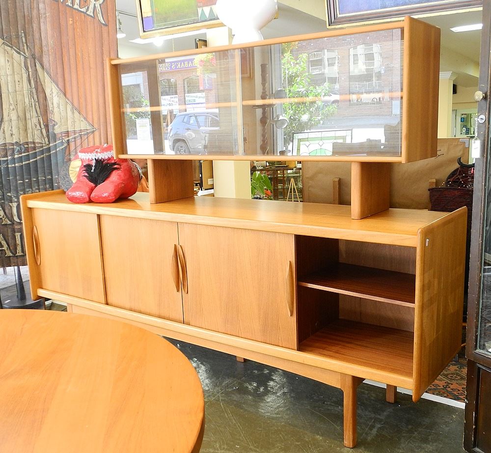 Danish Modern Style Teak Sideboard & Hutch, 82"w (handles noted).