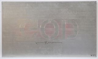 LOT 149 Metal Panel signed V. (Val) Kilmer, 12 1/2" x 20 1/8", "God". Estimate: $50 - $100 Sold For: $160 Auction Date: Tuesday, July 30 2024 at 4:00 PM