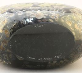 LOT 285 Studio Glass Vase signed Linda Westrom 1995, 8 3/4"h, "Roots". Estimate: $60 - $100 Auction Date: Tuesday, July 30 2024 at 4:00 PM