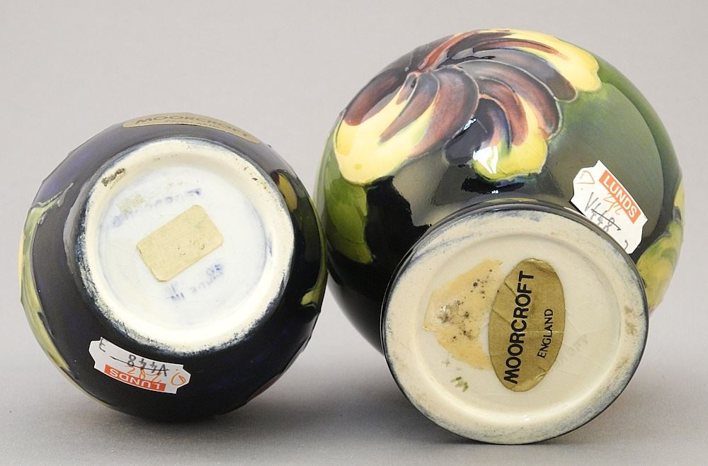 LOT 252 2 Moorcroft "Hibiscus " Vases, 3 5/8"h. Estimate: $50 - $60 Sold For: $35 Auction Date: Tuesday, July 30 2024 at 4:00 PM