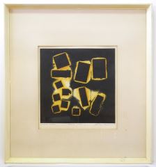 LOT 212 Monoprint signed Indistinctly, 13" x 12 1/4", "Glowing Forms", #1/1. Estimate: $50 - $60 Sold For: $80 Auction Date: Tuesday, July 30 2024 at 4:00 PM