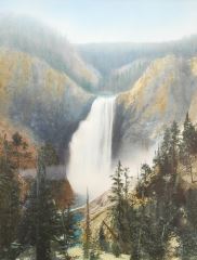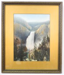 Antique Hand Tinted Photograph, 13 1/8" x 10 1/8", "Waterfall".
