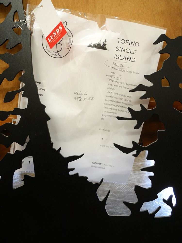 LOT 56 Black Painted Steel Silhouette, 22" x 47 1/2", "Tofino Single Island". Estimate: $100 - $150 Sold For: $90 Auction Date: Tuesday, July 30 2024 at 4:00 PM