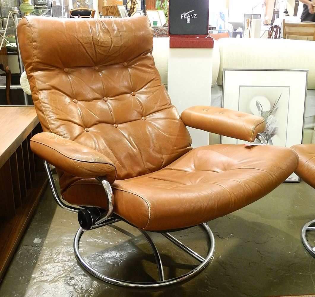 Vintage Ekornes Lounge Chair & Foot Stool, (leather noted, as found).