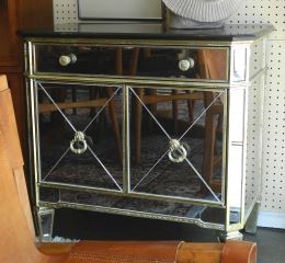 LOT 34 Pair of Chintz & Co. Directoire Style Mirrored Side Cabinets, 29 1/2"h. Estimate: $300 - $400 Sold For: $375 Auction Date: Tuesday, July 30 2024 at 4:00 PM