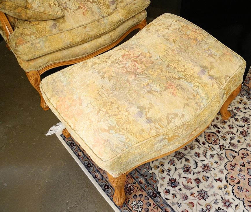 Fruitwood Bergere & Ottoman, 38"h x 56" x 32"w.